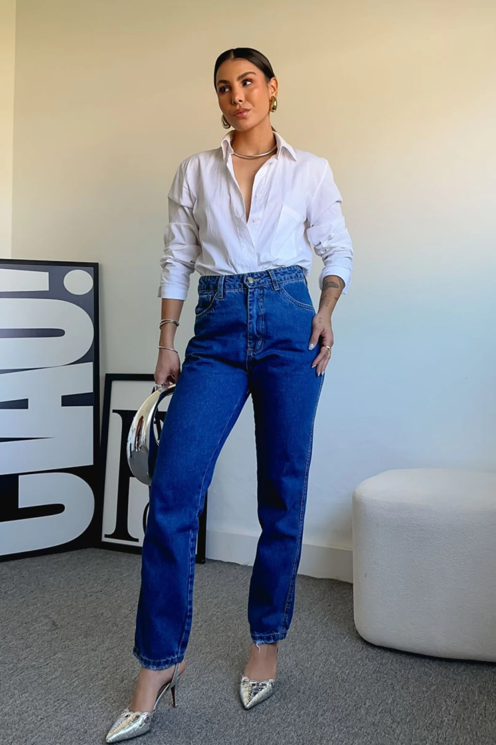 Dica de estilo: Para um visual casual e moderno, use a Calça Jeans Mom Luly com tênis branco e uma blusa leve. Se quiser um toque mais elegante, aposte em botas e acessórios minimalistas.