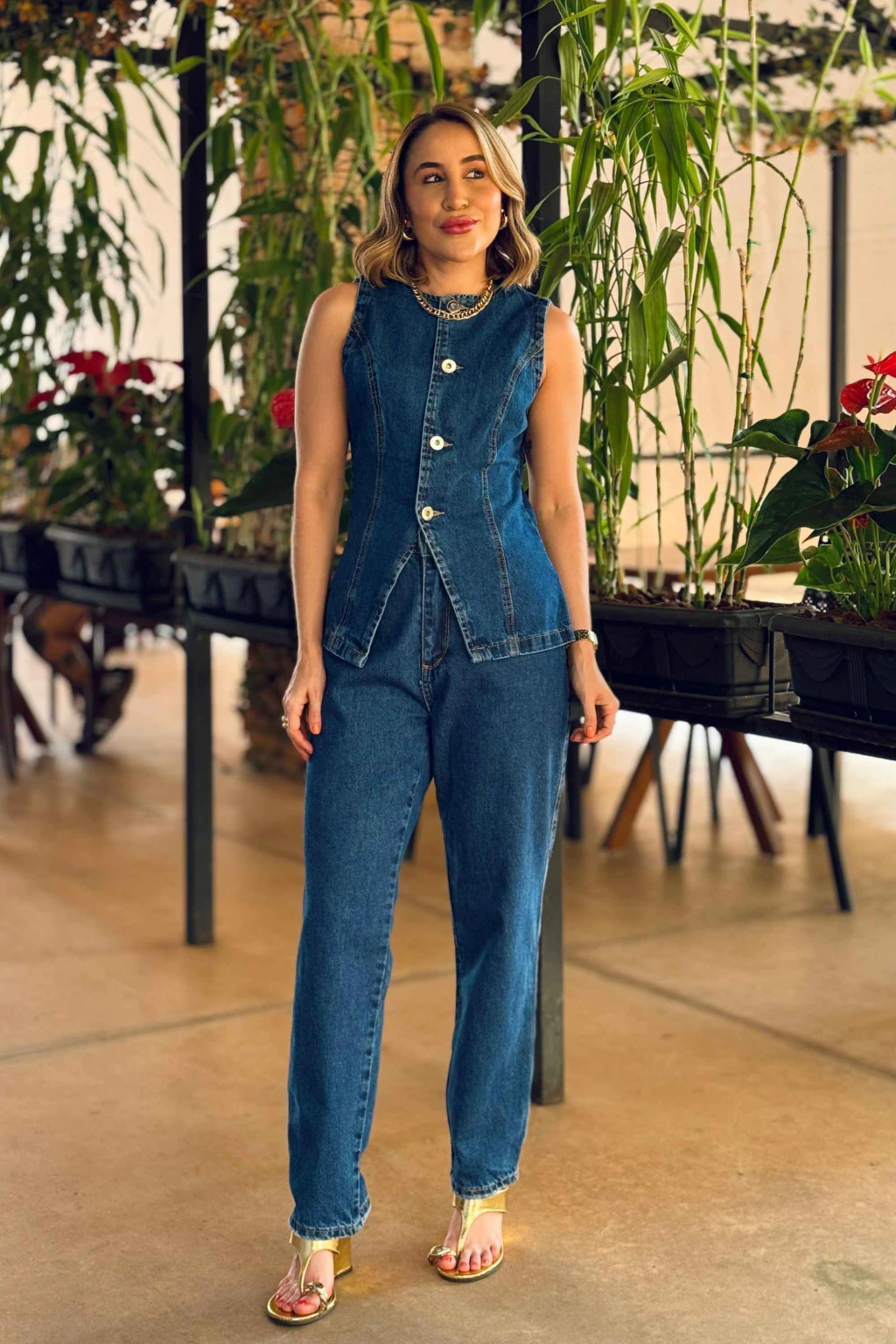 Colete Jeans Luly com Botões Frontais – Estilo e Versatilidade para o Seu Look